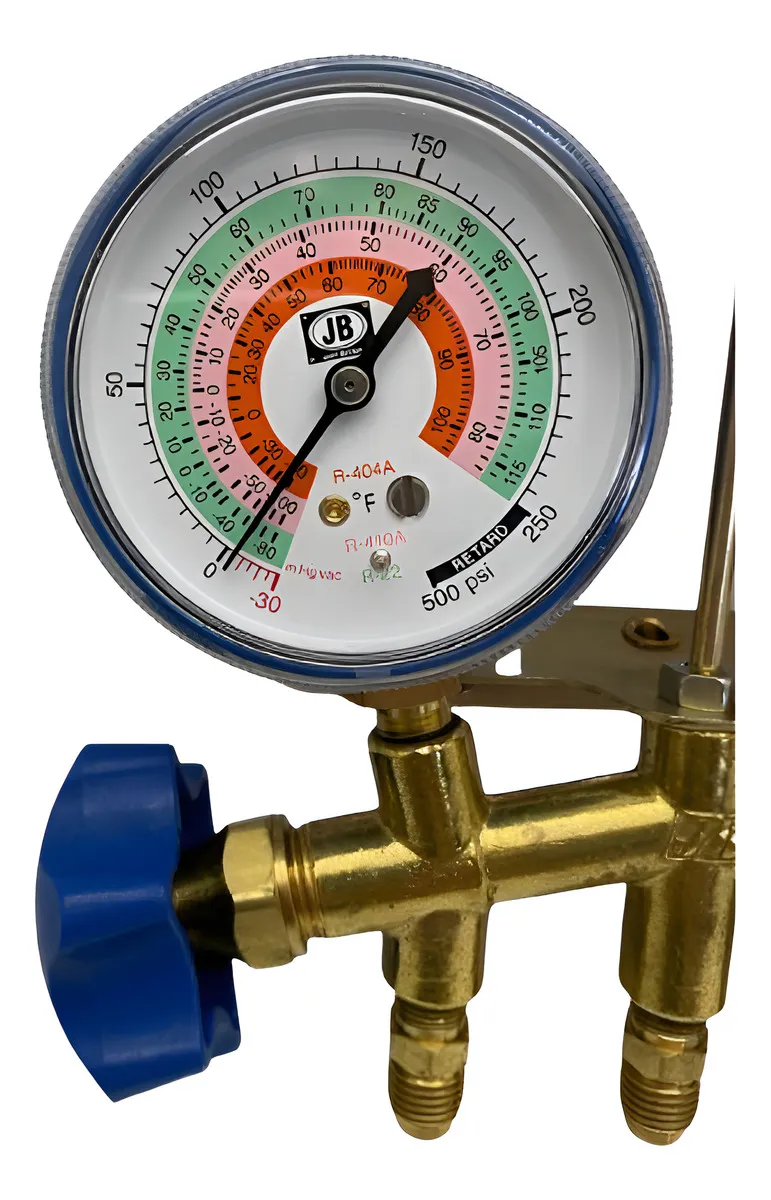 Utilizado para medir a pressão de determinado gás no sistema durante a manutenção do mesmo. Também é conhecido como analisador de gás. Podem analisar diferentes gases de acordo com a escala indicada no manômetro.