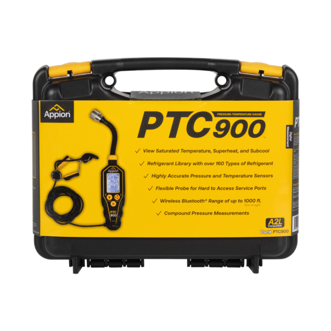 Conectividade Bluetooth e Monitoramento Remoto – Ao emparelhar o PTC900 com o Aplicativo Central Appion™ via Bluetooth, é possível monitorar remotamente as leituras em tempo real, ideal para análises de sistemas complexos e eficientes. Também é possível realizar múltiplas leituras remotas simultaneamente.
