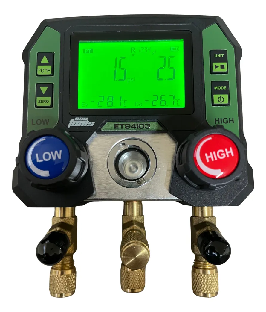 MEDIDOR DIGITAL DE REFRIGERANTE – ALTA PRECISÃO E SEGURANÇA PARA HVAC-R Instrumento digital para manutenção e comissionamento de sistemas de refrigeração e bombas de calor. Mede pressão e temperatura (evaporação/condensação), realiza teste de retenção de pressão e monitora vácuo, com operação simples, display claro e recursos de segurança. Compatível com ampla lista de refrigerantes não corrosivos, água e glicol. Destaques do produto - Leitura rápida e precisa: faixa de pressão –14,5 a 800 psi, resolução 0,5 psi, precisão +/-0,5% FS - Modos de trabalho: PT (pressão/temperatura), HP (teste de retenção/vazamento) e VAC (vácuo) - Compensação térmica no teste de pressão: AP ajustado pela temperatura para resultados mais reais - Operação intuitiva: zeragem atmosférica, seleção de unidades e refrigerante, APO (desligamento automático) - Construção profissional: corpo robusto, válvulas confiáveis, portas 1/4 SAE, gancho para suspensão - Ampla compatibilidade: base NIST com dezenas de refrigerantes e favoritos de acesso rápido - Segurança em foco: alertas, limites bem definidos e orientação de EPIs Especificações técnicas - Faixa de pressão: –14,5 a 800 psi - Resolução (pressão): 0,5 psi | Precisão: +/-0,5% FS - Unidades (pressão): kPa, MPa, psi, inHg, bar, kg/cm2 - Unidades (temperatura): °C / °F - Temperatura de operação: –10 a 50 °C - Temperatura de armazenamento: –20 a 60 °C - Conexões: 1/4 SAE - Display: LCD com ícones de modo (PT/HP/VAC), nível de bateria e APO - Alimentação: pilhas (consulte modelo do seu instrumento) com desligamento automático Modos de operação - PT (Pressão/Temperatura): leitura de alta/baixa e cálculo de evaporação/condensação do fluido - HP (Retenção de Pressão): define tempo de teste (30 min a 24 h), congela pressão inicial e exibe AP compensado por temperatura - VAC (Vácuo): leitura do nível de vácuo para evacuação do sistema; recomenda-se uso de mangueiras de alta condutância e removedor de núcleo Compatibilidade de refrigerantes - Compatível com a maioria dos refrigerantes não corrosivos (ex.: R134a, R22, R32, R404A, R407C, R410A, R448A, R449A, R507A, R600, R600a, R290, entre outros) - Não compatível com amônia (NH3/R717) - Alguns modelos permitem atualização/ampliação da lista via aplicativo Segurança e uso recomendado - Utilize EPIs (óculos e luvas) e fixe o instrumento durante medições pressurizadas - Respeite a faixa de medição e realize a zeragem com o instrumento exposto à atmosfera - Não utilize em atmosferas potencialmente explosivas - Para refrigerantes inflamáveis (acima de A2L), siga estritamente normas e procedimentos locais Conteúdo da embalagem - 1 Medidor digital de refrigerante - Manual rápido de uso - Itens adicionais variam conforme o kit do fabricante - Garantia e suporte - Garantia conforme fabricante/distribuidor - Assistência técnica e calibração disponíveis (consulte canais de suporte) TIRE SUAS DÚVIDAS: Como fazer a zeragem corretamente? Deixe o instrumento desconectado do sistema (à atmosfera) e acione a função de zerar pressão antes da medição. O teste de retenção compensa temperatura? Sim. O AP é compensado por variação térmica interna para refletir condições mais reais do sistema. Posso usar com R717 (amônia)? Não. O instrumento não é compatível com refrigerantes à base de amônia. É possível registrar ou exportar dados? Alguns modelos oferecem registro/exportação via aplicativo. Verifique se o seu é compatível. Caiu no chão. E agora? Inspecione o corpo e conexões; substitua o tubo de enchimento se necessário e valide as válvulas antes de voltar ao serviço. Garantia de fábrica: 3 meses